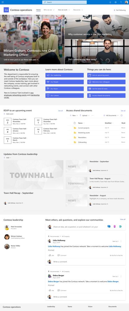 - Kant-en-klare pagina's, lijsten en documentbibliotheekmappen die het eenvoudig maken om sites te bouwen en uw eigen aangepaste inhoud te inspireren.